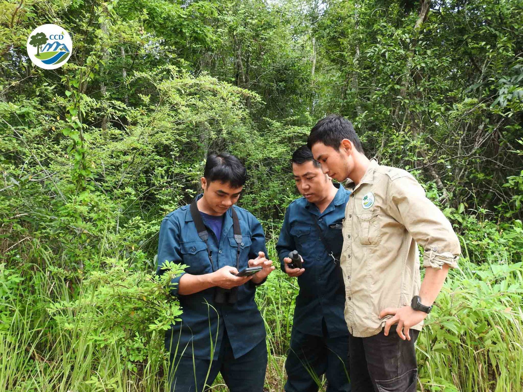 Ea So Nature Reserve staff practicing with monitoring equipment